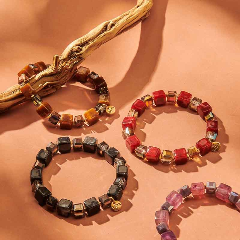 Geef je look een stijlvolle boost met deze zwarte Biba armband! Geregen met vierkante zwarte kralen en goudkleurige details van metaal, crystal en resin. Dankzij het elastiek (18 cm) zit hij altijd perfect en combineer je hem moeiteloos met andere Biba sieraden.